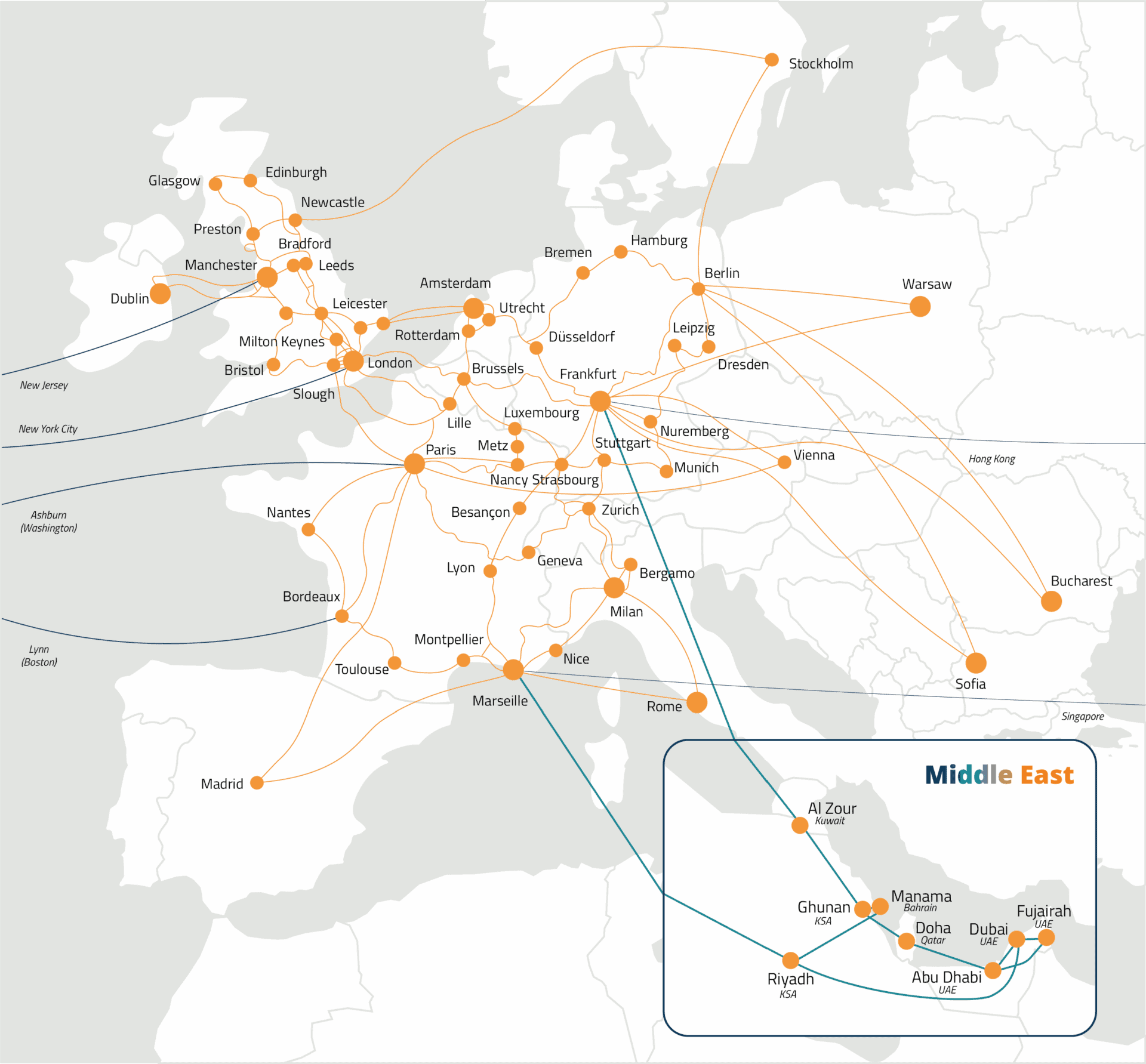 Our expansive, deep, and diverse fibre network covers Europe’s major hubs, North America and many other countries through the Zayo group of companies— which include Zayo North America, Zayo Europe, and Zayo Global Reach.